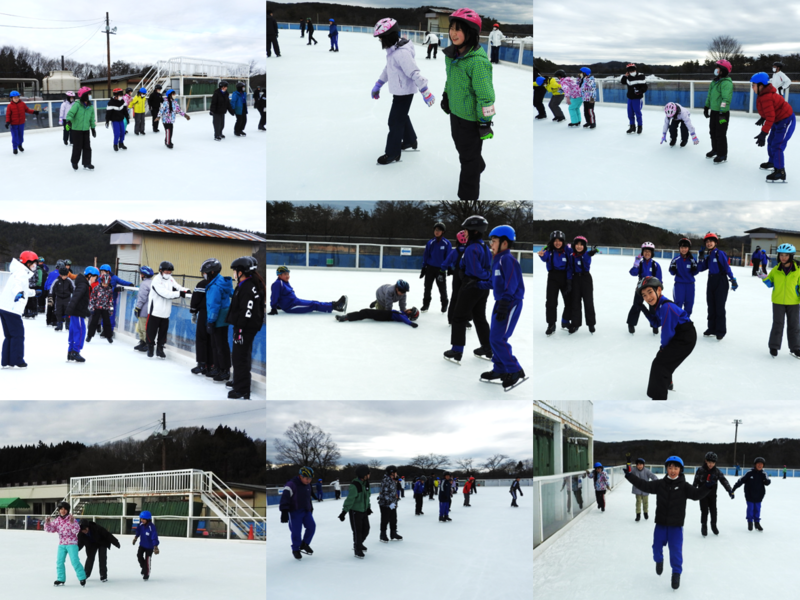 学校のスケート教室を行うのは2回目だけあって、スケート靴の履き方、基本的な滑り方は練習をしながら勘を取り戻していました。