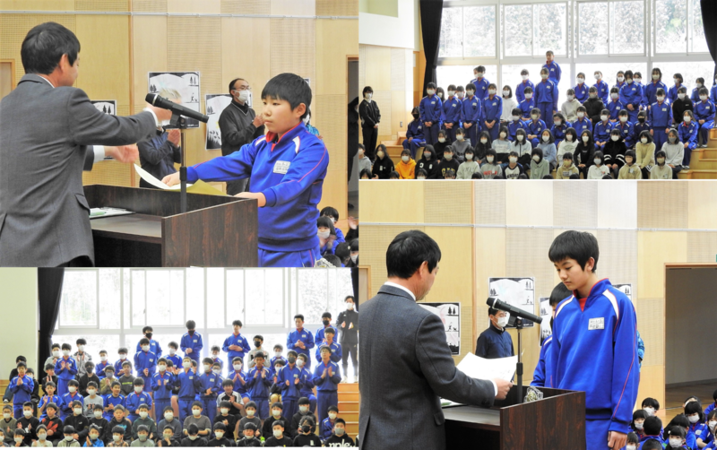 企画委員会の6年生のあいさつに続き、石川町体育協会表彰 少年スポーツ奨励賞の表彰が行われました。
