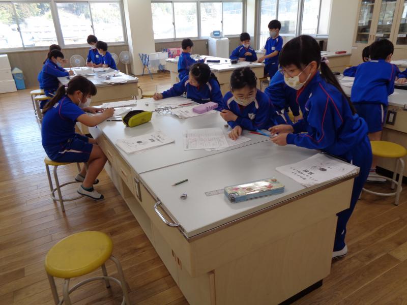 算数の学習のまとめを習熟度別に分けて、教頭先生も入って4人で指導しています。2年生の学習内容の確実な定着を目指します。