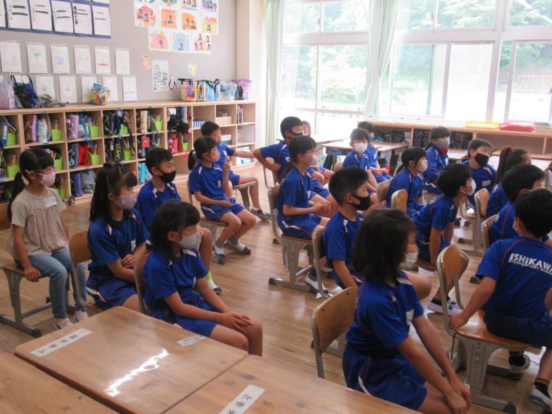2021年6月14日 09時57分沢田小学校との交流会が行われました。3年生は、各教室で、一人一人自己紹介をしたり、フルーツバスケットというゲームをしたりしながら交流を深めました。4年生は、体育館で、沢田小学校の子どもたちの自己紹介をした後、「猛獣狩りに行こうよ」「後出しじゃんけん」などのゲームをしながら楽しみました。