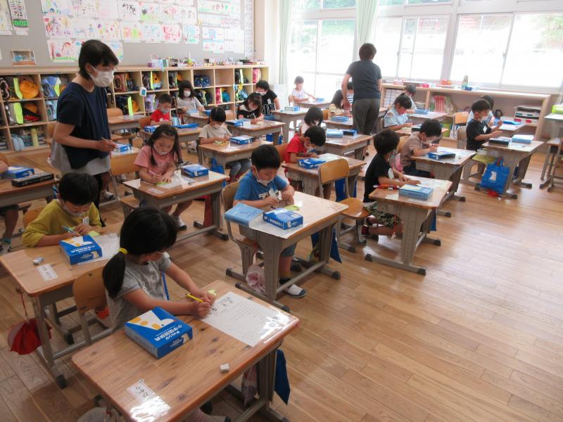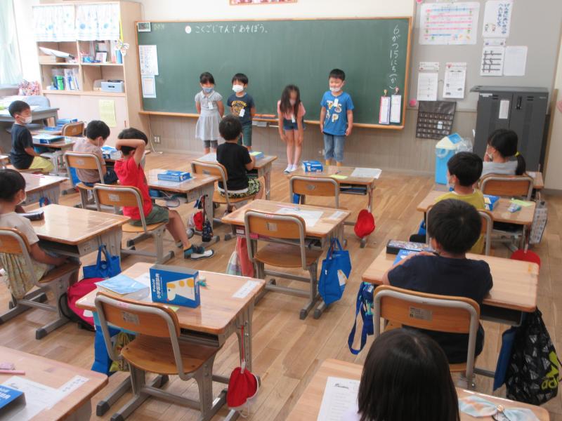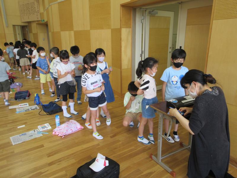 2021年6月15日 13時00分本日は1,2年生が沢田小学校との交流会を行いました。1年生は、始めに教室で自己紹介をした後、国語辞典を使ってしりとりなどを行いました。2時間目は体育館で、仲間集めゲームやフラフープくぐりなどをして交流を深めました。2年生は、体育館で、身体全体を使ったジャンケンゲーム、ダンス等を楽しんだ後、クリスタルホールでしおり作りを行いました。しおりにはラミネートをかけ、読書の際に活用します。沢田小学校のお友達が帰る際には、昇降口でなごり惜しそうに見送っていました。