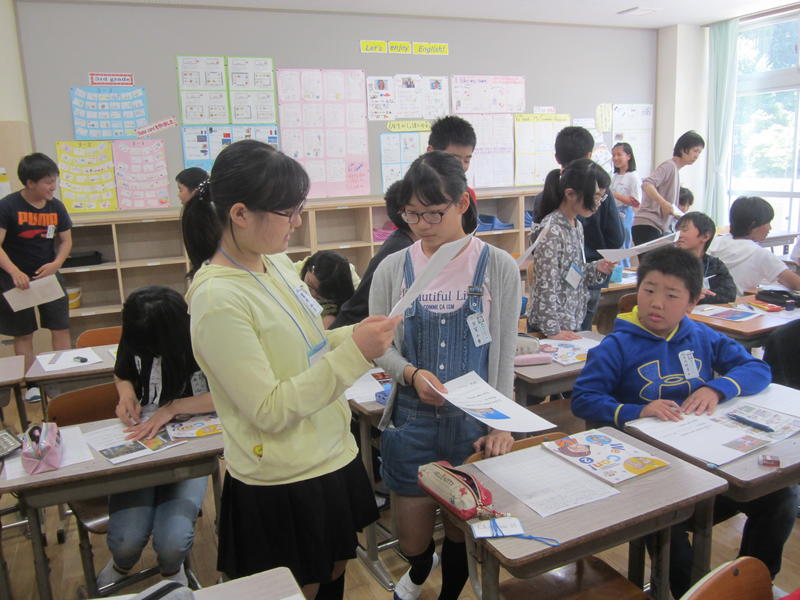 外国語活動(6年) 2019年6月18日 10時21分 6年生の外国語活動の様子です。今日は、日本の良さを相手に伝える学習を行っていました。日光や華厳滝、姫路城など一人一人日本の良いところを英語で伝えようと頑張って学習していました。