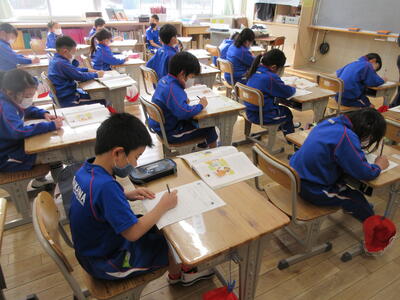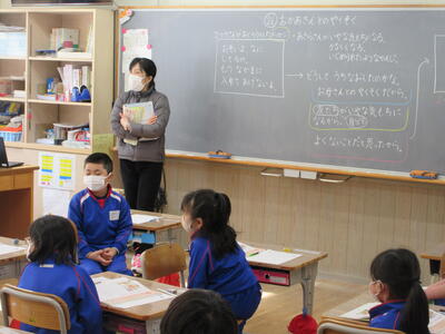 2022年1月20日 12時45分2年生は各学級毎に、道徳「おかあさんとの やくそく」の授業を行いました。遊ぶ約束をしたものの、遅れている友達に、思いやりのないメッセージをタブレットを使って送ろうとする主人公。その時「お友達が悲しくなるような使いかたはしない。自分だったらどう思うか、よく考えて使う」というお母さんとの約束を思い出し、メッセージを打ち直すという資料です。子ども達は自分のこととして考え、「友達の気持ちを考える」「悲しむことをメッセージとして送らない」「よいと思うことをする」など活発に話し合っていました。