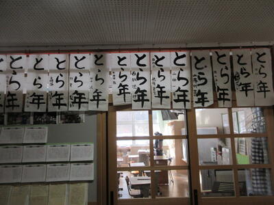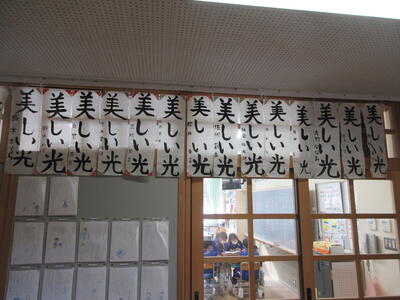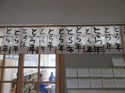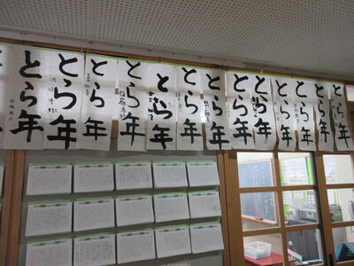 冬休みを中心に児童の皆さんが書いた、書き初めの作品、今日は3,4年生の作品を紹介します。