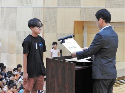 2023年8月28日 13時26分第2学期始業式に引き続いて、表彰を行いました。
