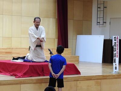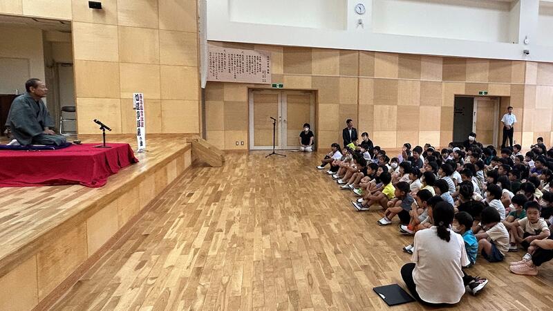2023年9月4日 12時47分3校時目に1~3年生、4校時目に4~6年生を対象に「落語鑑賞教室」が行われました。