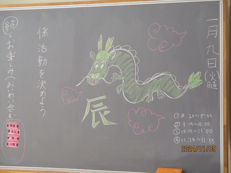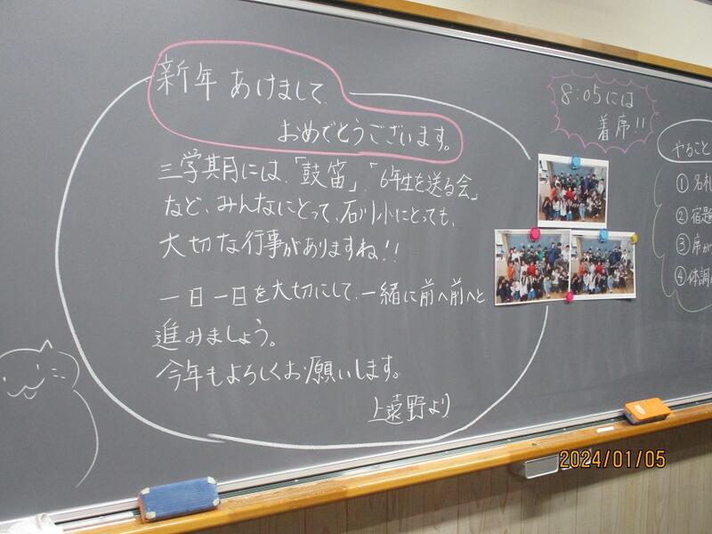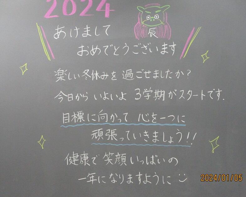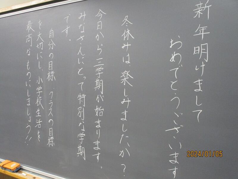 始まるよ3学期 2024年1月10日 00時24分 待ってました子ども達。各クラスの黒板には、担任からのメッセージがびっしり。待ってましたよ子ども達。早速お正月恒例!?のおみくじ引きのクラスも。さて今年の運勢は?