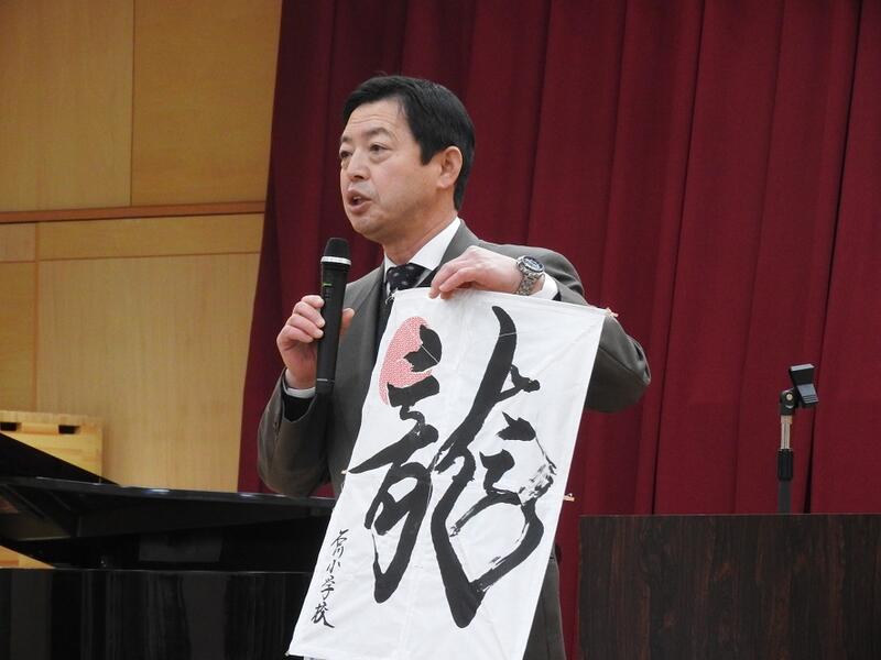 ②の干支については、竜(龍)にちなんだ話と共に、お正月らしく「凧」についての話がありました。風のない日の凧は飛びませんが、風を待つだけでなく,自分から風を起こして高く飛上げる、そんな3学期にしてほしいという話です。