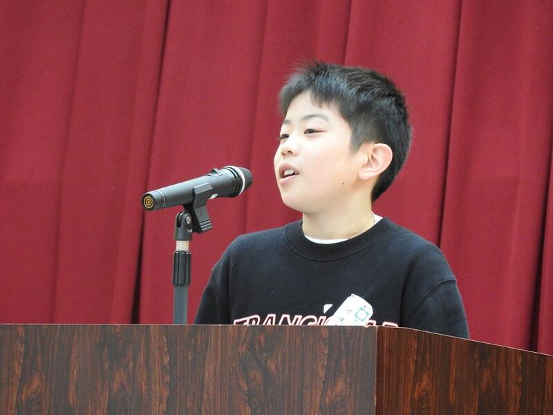 児童を代表してのあいさつも大変堂々とした立派な態度でした。原稿を見ずに発表する姿に羨望の眼差しの子ども達、もちろん大きな拍手つきです。