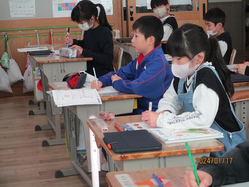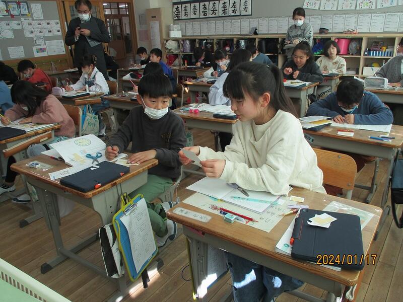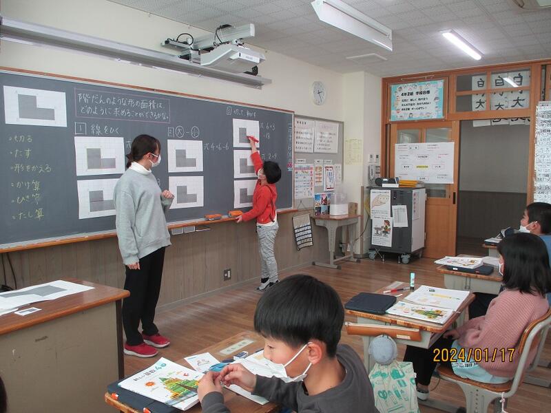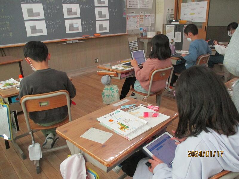 2024年1月17日 21時36分本日は、新年最初の研究授業(4年2組)教科は算数、図形の面積を求める授業です。