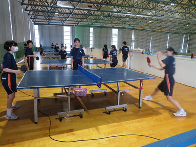体育館では、卓球部・バレーボール部・バスケットボール部が活動しています。