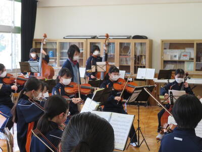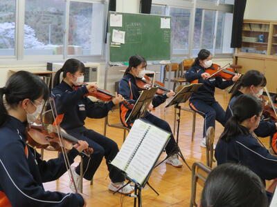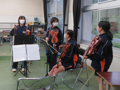 管弦楽部は新入部員5名を加え、毎日練習を重ねています。今年度から部活動指導員を配置しました。
