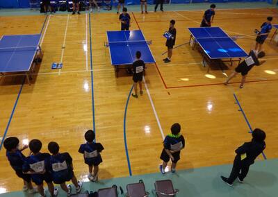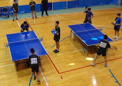 ↓ 午前中の団体戦の様子(男子)石川中は青いユニフォーム