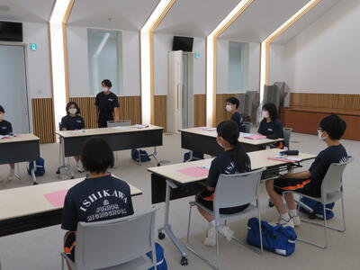 2年生は、5、6人班でそれぞれテーマを決め、石川町のことを調べてまとめます。例えば、「石川町の特産品はどのように使われているか」「石川町を有名にするには」「子育てしやすい町にするには」「防災に強い町にするには」「未来の石川町を考える」などです。インターネット等で調べ、インタビューの内容をもとにまとめ、テーマに迫ります。