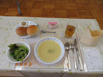 会話はありませんでしたが、先生たちのウエイター姿にニヤニヤしながら、みんなで楽しくいただきました。おかわりもたくさんして、大満足でした。