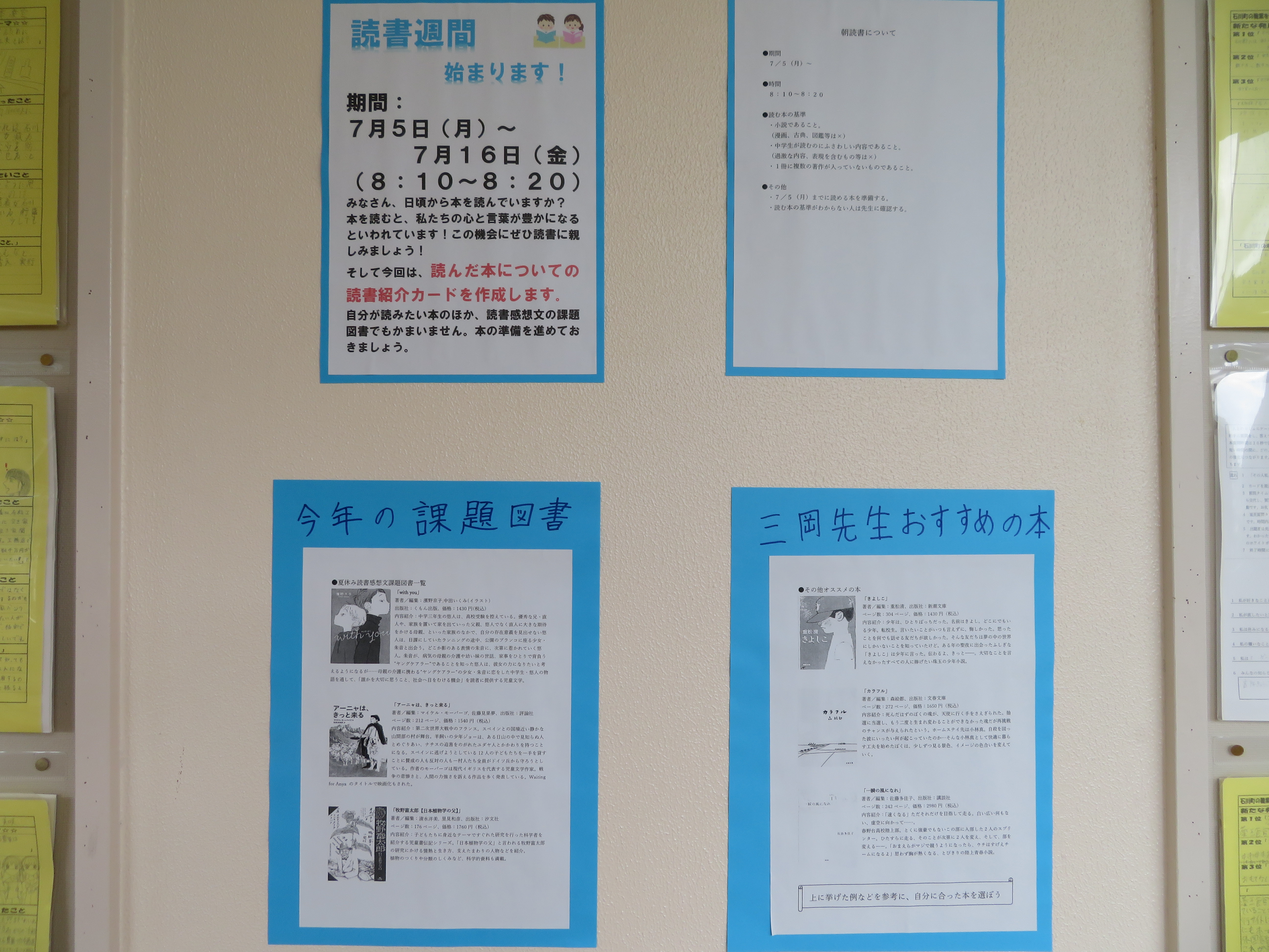 7月5日(月)~9日(金)を読書週間として、全学級で朝読書をしています。