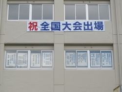 全国大会出場を祝して、今回、「祝 全国大会出場」と題した横断幕をつくっていただき、本日お披露目をしました。