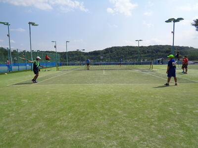 石川中学校の校地内にテニスコートが7面あり,その近くに町のコートもあります。ソフトテニス部は,恵まれた環境の中で活動しています。