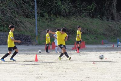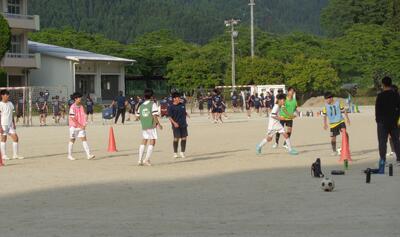 R6 サッカー部 2024年10月30日 17時10分 サッカー部は,校庭で練習しています。1チーム11人で対戦する競技ですので,人数が揃うかどうかに気を遣うこともありますが,これからどんどん上達していくでしょう。楽しみなチームです。
