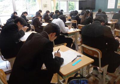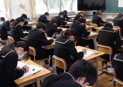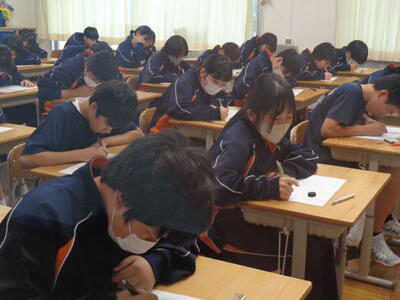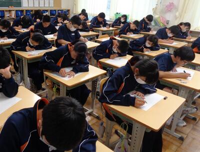 静まりかえった校舎内,どの学級も真剣に取り組む様子が見られました。