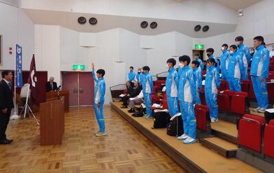7日(木)に,第36回ふくしま駅伝石川町選手結団式・壮行会が町の施設で行われました。
