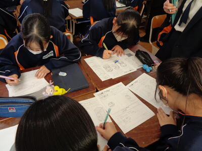 ↓ 生徒はあらかじめワークシートにアイディアスケッチをしてきています