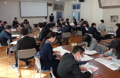↓ 最初の回なので,生徒指導の先生から「校則の意義・運用,校則の見直しの考え方」について話してもらいました