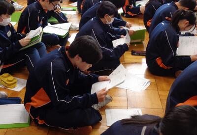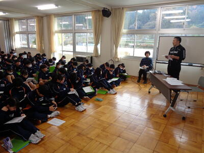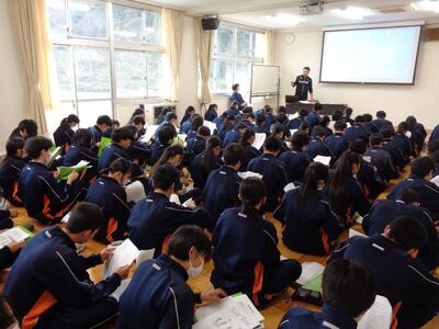 15日(金)に,定期テストを終えた3年生は,その後の6校時に学年で集合。
