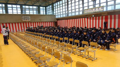 ↓ 卒業式直前の確認事項や春休み中(3月31日までは中学生)の過ごし方などについて話がありました