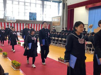 卒業生の皆さんの素晴らしい姿で,厳粛な中にも心の温かさを感じる,素敵な卒業式になりました。