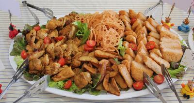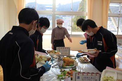 バイキング給食では,自分の適量と,栄養のバランスを考え,楽しみながら実践を通して身に付けることをねらっています。
