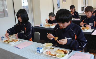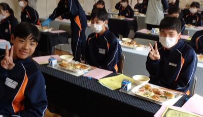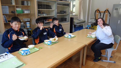 ↓ DJを終えて,この日の放送担当の生徒と一緒に給食