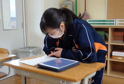 ↓ シートが完成したら,その文を声に出して読み,タブレット端末に録音します