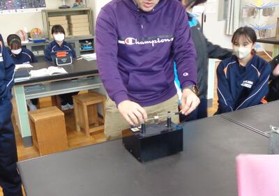 静電気がたまって,一気に空間を流れる様子「放電」を学習します