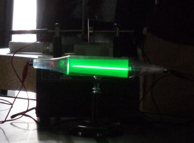 クルックス管は,両端が絞られた形のガラス管で,中は減圧(空気が極力少なくなっている)状態。