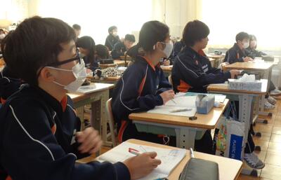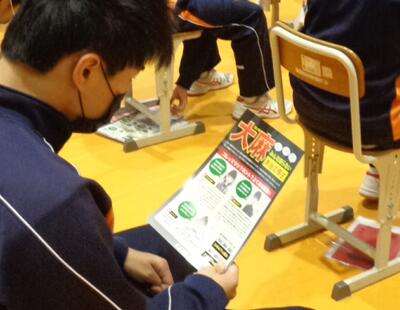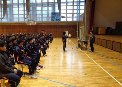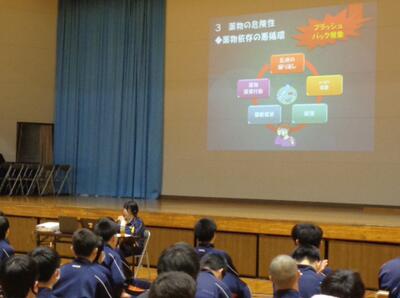 12月11日(月),体育館にて,3年生を対象とした保健講話を実施しました。今回は「薬物乱用防止教室」。