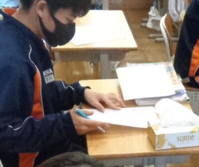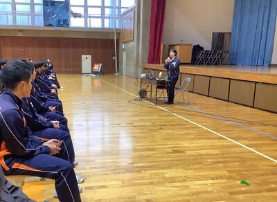 警察署の生活安全課の方を講師として,薬物の危険性,依存症の怖さ,迫ってくる誘いやその断り方など,更に一歩社会に近づく3年生に,是非とも感じ取って欲しいことがたくさんあった講話でした。