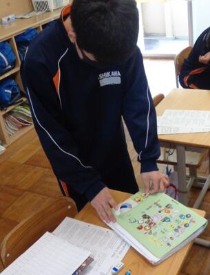 ↓ カードに文字があるので,班の代表の人1枚引いて,その文字を「絵文字」にしてみよう
