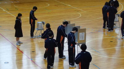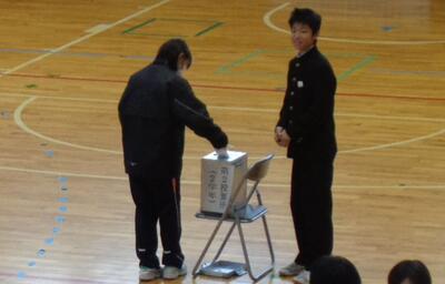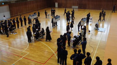 12月12日(火)に,体育館に全校生が集合して生徒会役員改選立会演説会・選挙が行われました。