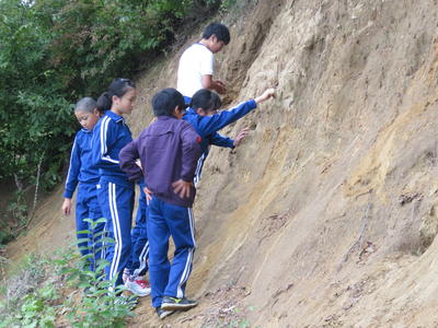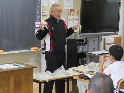 役場から、鉱物関係のスペシャリストである講師の先生にお越しいただいて、大地のつくりについて学習しました。