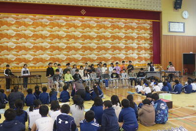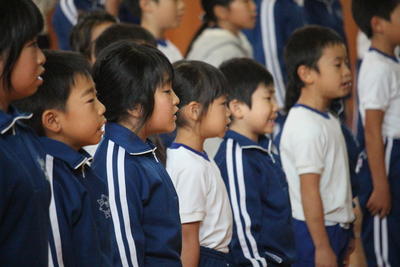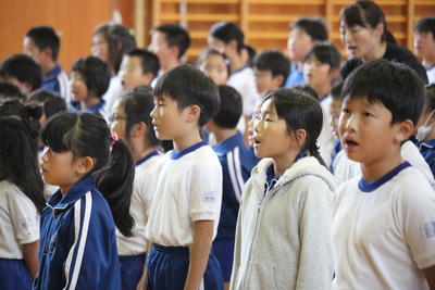 野小フェスティバルまで2週間となりました。今日は,音楽集会で全校合唱の練習を行いました。