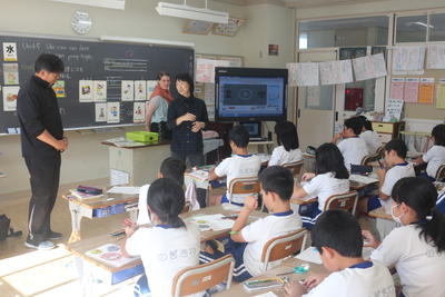 今日の5年生の外国語活動は「Can」を使っての学習です。担任の先生への質問をしての学習となりました。