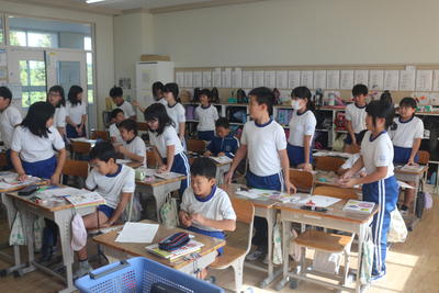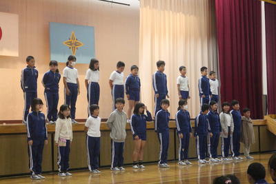 いよいよ野小フェスティバルまで1週間となりました。これまで学年ごとの練習は行ってきましたが,全体での練習はしてきませんでした。今日の全体練習では,フェスティバルの流れだけでなく,どのタイミングで「緞帳を上げるか」「アナウンスするか」「手伝いをするか」「全体合唱の隊形は・・・」などを確認しました。当日どんな発表になるか楽しみにしていてください。写真の最後は,学年ごとに座っているときの脱いだ靴の様子です。先生方から言われなくとも自分たちできれいにそろえていました。さすが野小っ子!!!