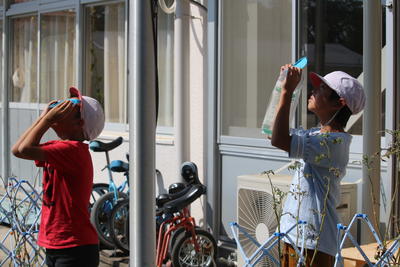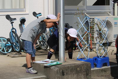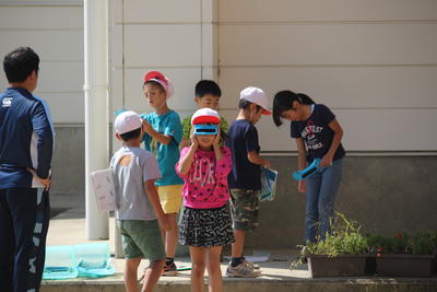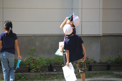 3年生の理科の授業で,太陽の学習をしています。太陽の光によってできる影の方角や遮光板を用いて太陽の観察をしました。