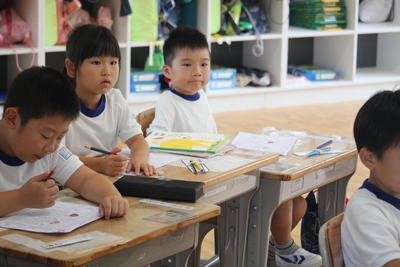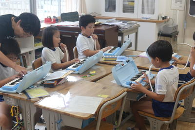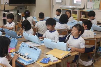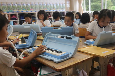 2年生の音楽の授業では,鍵盤ハーモニカで曲を演奏していました。みんなの音がそろっていてとても素敵でした。