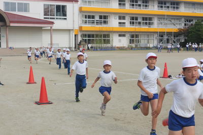 マラソン大会まであと1週間となりました。今日は,3・4年生,5・6年生がそれぞれ合同で試走を行いました。今日は負けても,本番は勝つぞと意気込みが感じられます。