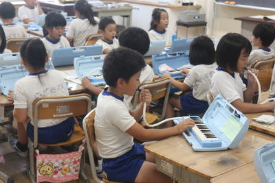 2019年10月4日 12時04分2年生の音楽の授業では,鍵盤ハーモニカで曲を演奏していました。みんなの音がそろっていてとても素敵でした。