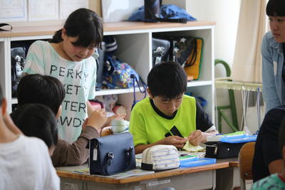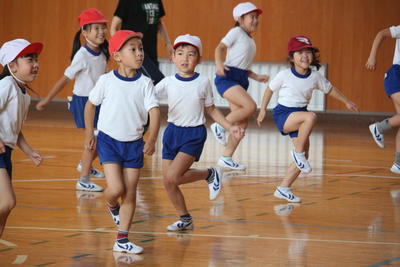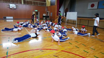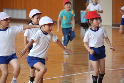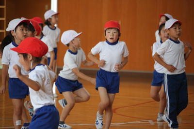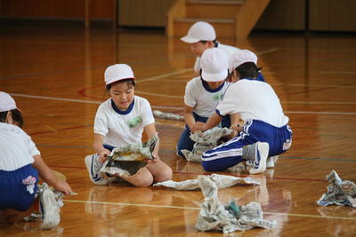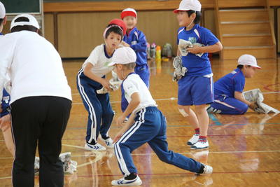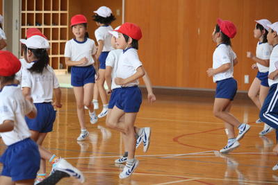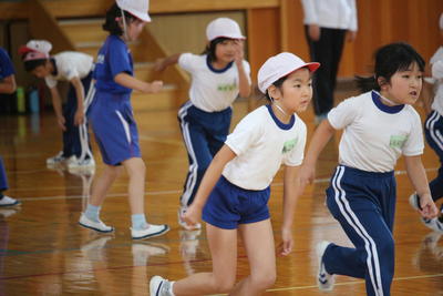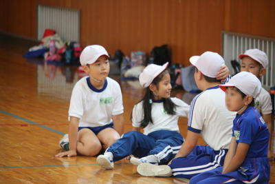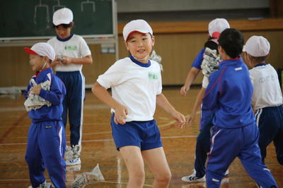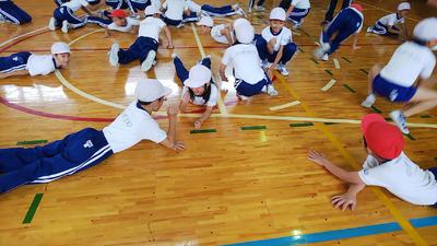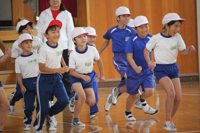 1年生の3校時の授業は国語で「大きなかぶ」の音読,2年生は生活科の授業で町探検のまとめでした。4校時目は合同体育で,いろいろな運動を通して体づくりをおこないました。
