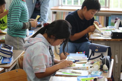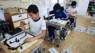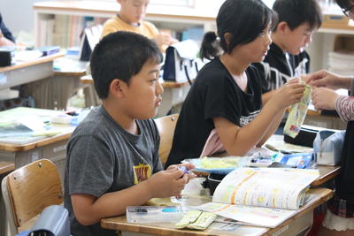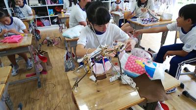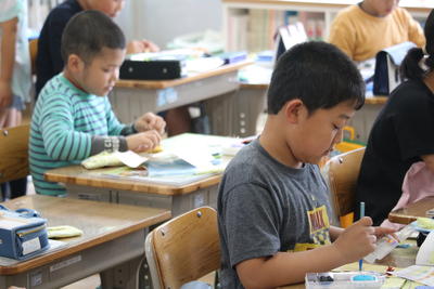 上学年の授業中様子です。4年生は算数の授業、5年生はテスト中でした。6年生は図工の時間で作品制作中でした。