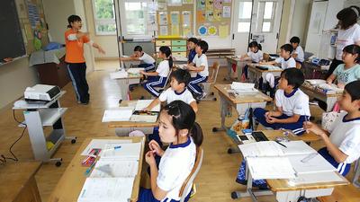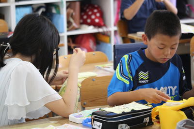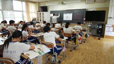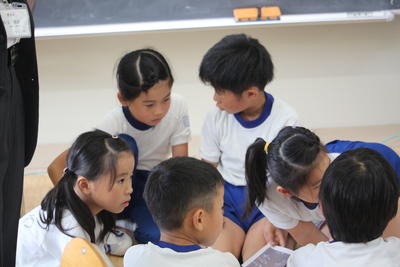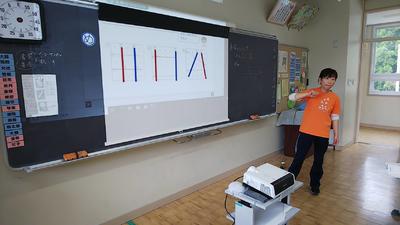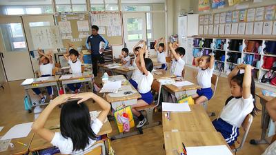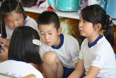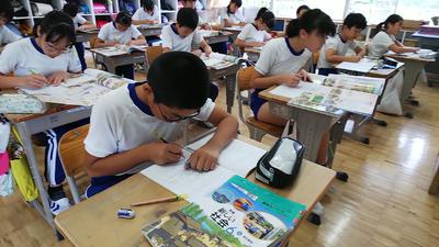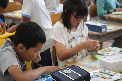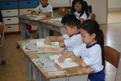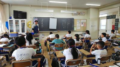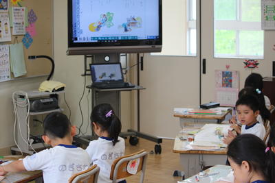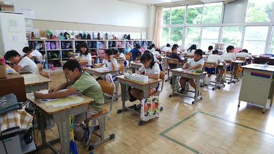 2019年7月16日 13時59分1年生の3校時の授業は国語で「大きなかぶ」の音読,2年生は生活科の授業で町探検のまとめでした。4校時目は合同体育で,いろいろな運動を通して体づくりをおこないました。